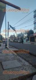 Xalapa, Ver., 22 de febrero de 2026.- Debido a los fuertes vientos, un enorme árbol cayó hacia la Avenida Fernando Gutiérrez Barrios, de la colonia Luz del Barrio, y derribó el cableado de energía eléctrica y servicio de Internet.