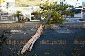 Xalapa, Ver., 22 de febrero de 2026.- Otro árbol cayó en la calle Ignacio de la Llave la tarde de este domingo, bloqueando los dos carriles.