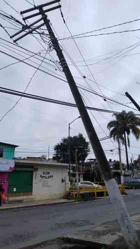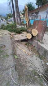 Xalapa, Ver., 23 de febrero de 2026.- En la avenida Fernando Gutiérrez Barrios, colonia Luz de Barrio, cayó árbol de gran tamaño que dañó varios postes del tendido eléctrico y de otros servicios varios, afectando gran parte de la colonia y escuelas. Al día de hoy sólo se ha retirado el árbol pero no ha acudido personal de CFE a reestablecer el suministro de energía pese a gravedad de los daños.