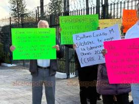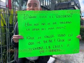 Xalapa, Ver., 24 de febrero de 2026.- Vecinos de Jilotepec protestaron en el Congreso del Estado por el abandono de la obra en la calle 2 de Abril en aquella población.