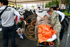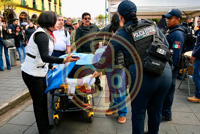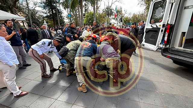 Xalapa, Ver., 24 de febrero de 2026.- Al menos una decena de estudiantes que fueron llevados al evento de la gobernadora Rocío Nahle por el Día de la Bandera comenzaron a desmayarse y a presentar hipotermia. Mientras la mandataria hablaba en el acto, los subían a ambulancias.