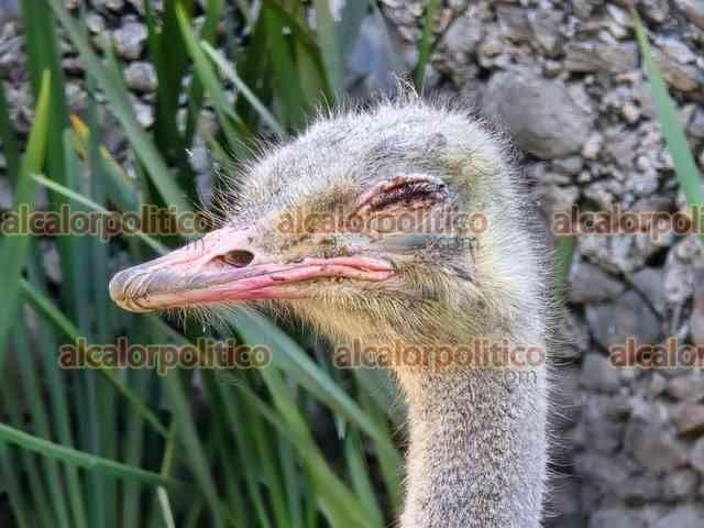 Orizaba, Ver., 24 de febrero de 2026.- Avestruz perdió el ojo en la UMA del Paseo del Río Orizaba. De acuerdo al alcalde Hugo Chahín, estaba jugando con otro y en algún momento se pelearon.