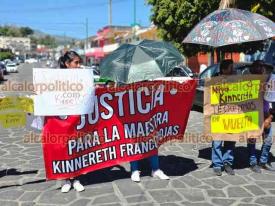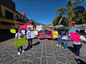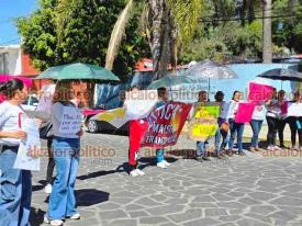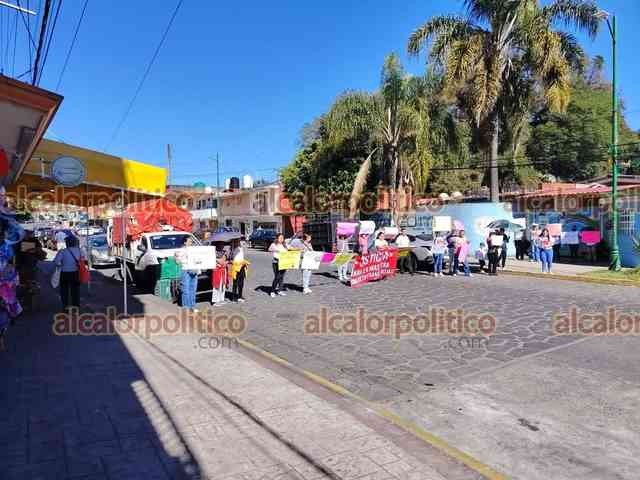 Banderilla, Ver., 27 de febrero de 2026.- Padres de familia del Jardín de Niños “Bertha Von Glümer” tomaron el plantel y bloquearon la calle principal en protesta porque les quitaron a una educadora.