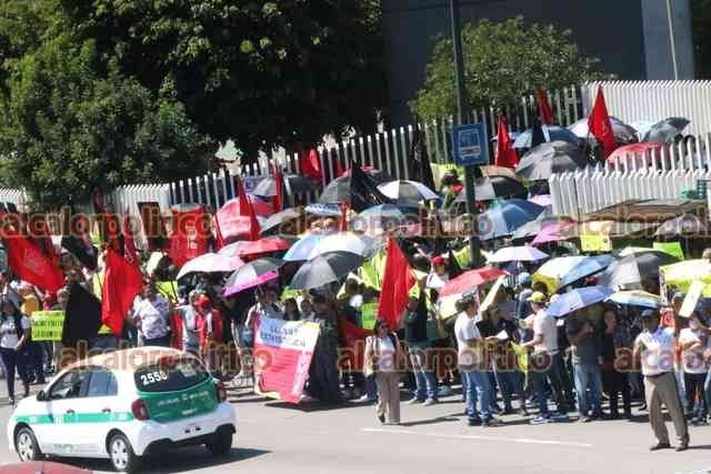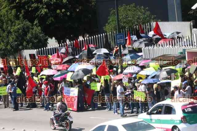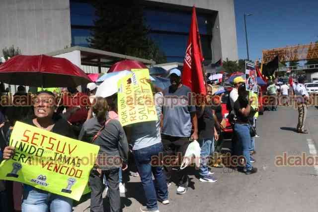 Xalapa, Ver., 27 de febrero de 2026.- Integrantes del SETSUV llevaron frente al Poder Judicial su protesta para exigir aumento salarial.