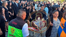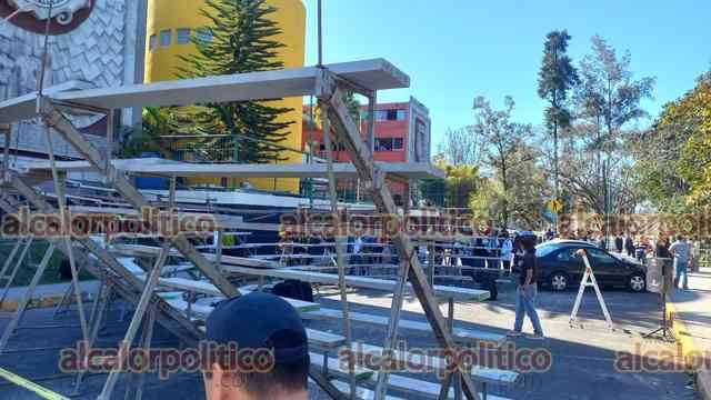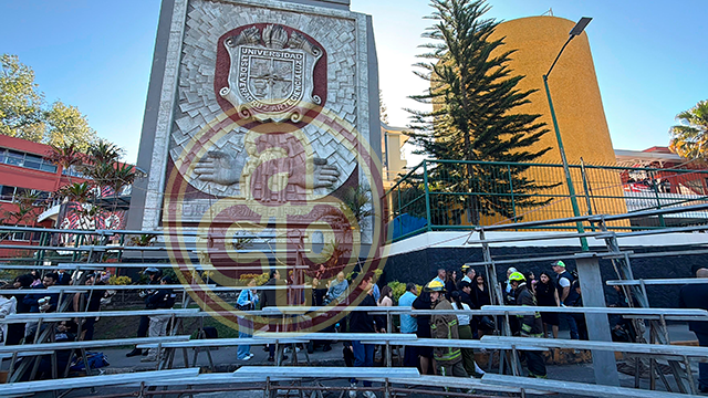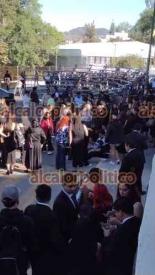 Xalapa, Ver., 2 de marzo de 2026.- Durante la toma de foto de generación de alumnos del sistema escolarizado de la Facultad de Derecho UV la estructura colocada para ellos se desplomó. Se reportan lesionados.