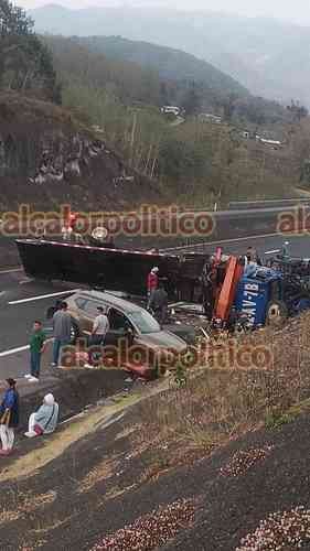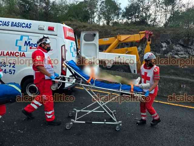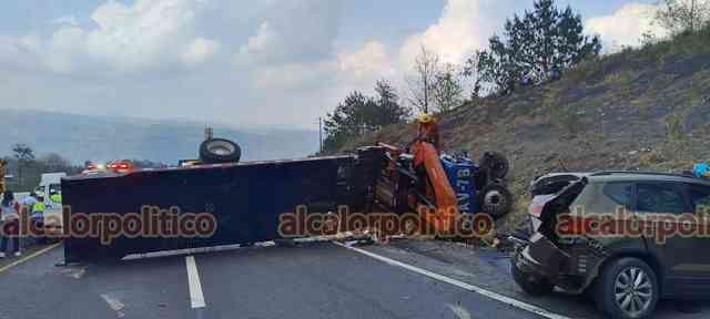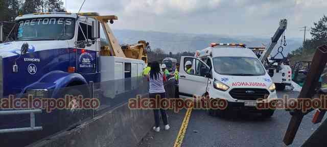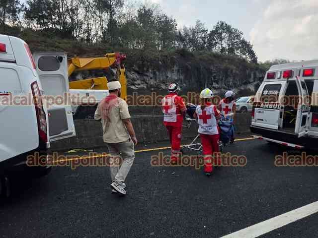 Tlacolulan, Ver., 6 de marzo de 2026.- En la carretera Perote-Xalapa se registró un choque múltiple a la altura de El Fresno, luego que una grúa perdió el control e impactó a 4 vehículos: Se habla de 8 lesionados.