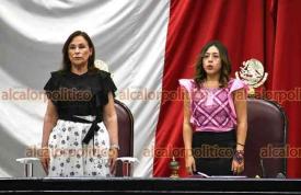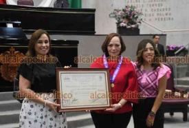 Xalapa, Ver., 6 de marzo de 2026.- En sesión solemne en el Congreso del Estado, la gobernadora Norma Rocío Nahle García entregó el Premio Estatal a la Mujer 2026 a la maestra Ana María Autrán Gómez.