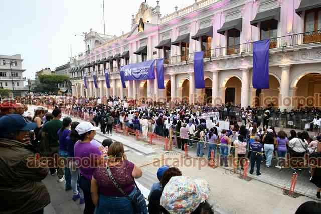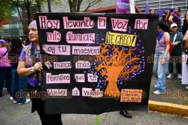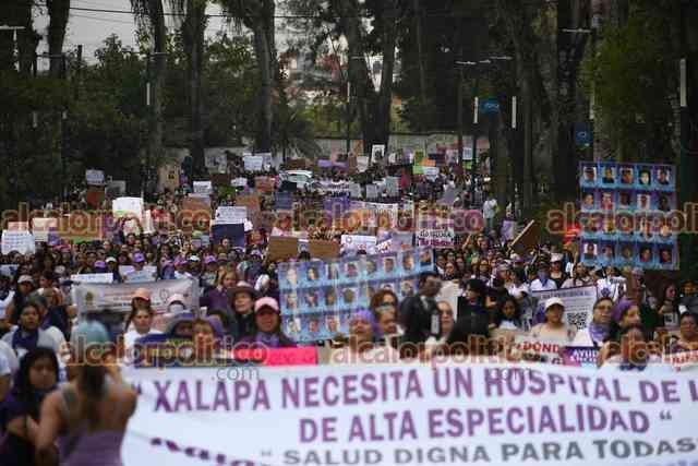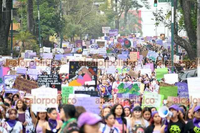 Xalapa, Ver., 8 de marzo de 2026.- Fueron miles de xalapeñas quienes este Día de la Mujer abarrotaron calles del Centro. “¿Y tú, esperas que te maten a tu hija?”, “Aunque no estés denunciado, sabemos lo que hiciste”, “Calladita no me veo más bonita”, fueron algunos de los mensajes que se observaron en la movilización