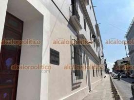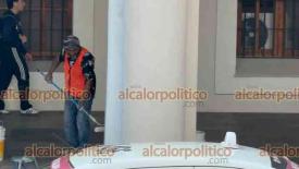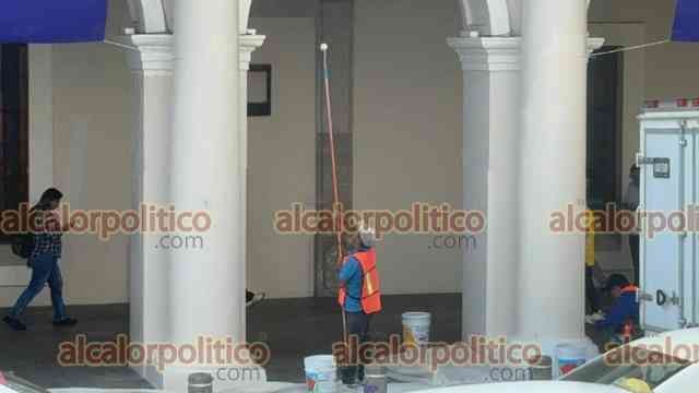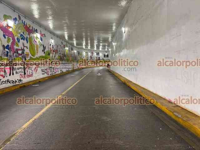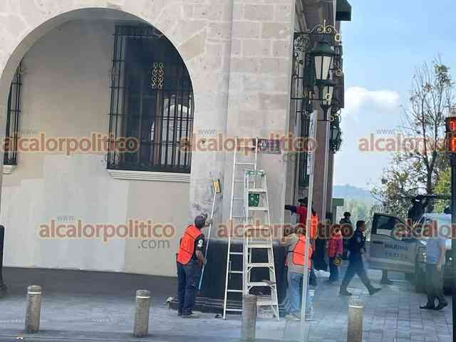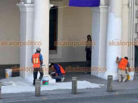 Xalapa, Ver., 9 de marzo de 2026.- Las pintas que mujeres hicieron durante la marcha del 8M en el Viaducto y Palacio de Gobierno fueron eliminadas con pintura. Los trabajos iniciaron desde la noche del domingo.