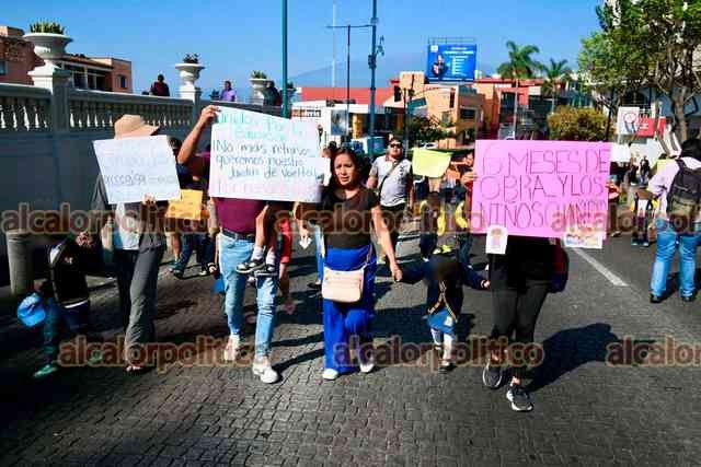 Xalapa, Ver., 10 de marzo de 2026.- Padres de familia del Jardín de Niños “José María Morelos y Pavón” bloquearon la calle Clavijero y Juarez, en la zona centro. Urgieron a que les entreguen el plantel, que lleva 6 meses en rehabilitación. Tome previsiones.