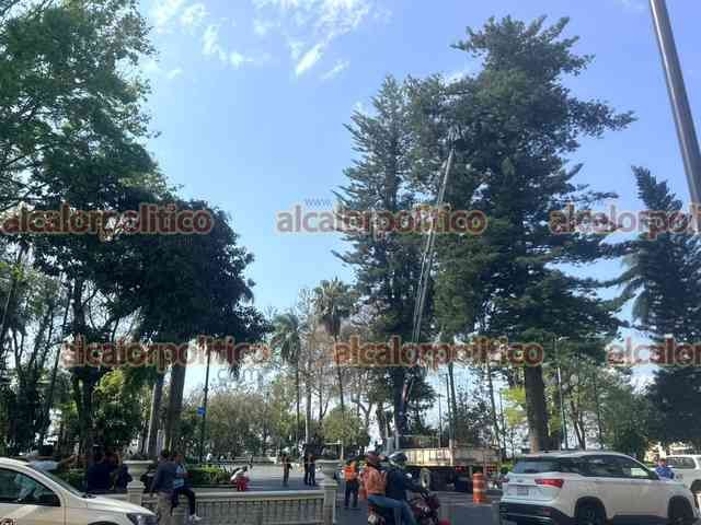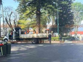 Xalapa, Ver., 12 de marzo 2026.- Personal municipal acordonó el área central del Parque Juárez para prevenir accidentes ante las fuertes rachas de viento. También se retiró rama de un árbol con riesgo de caer.