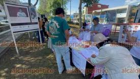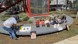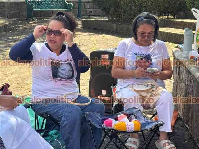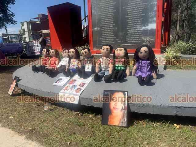 Xalapa, Ver., 14 de marzo de 2026.- En el Memorial de Desaparecidos, el colectivo Familiares Enlaces Xalapa se reunió para bordar el nombre de sus ausentes. También colocaron sus fotografías y figuras alusivas.