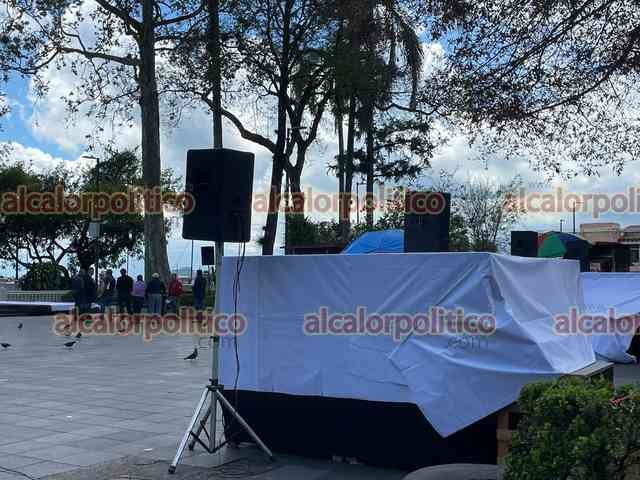 Xalapa, Ver., 20 de marzo de 2026.- En el parque Juárez se alista el escenario para la conmemoración del 220 aniversario del natalicio de Benito Juárez.
