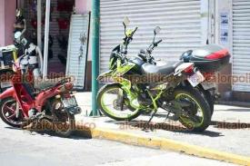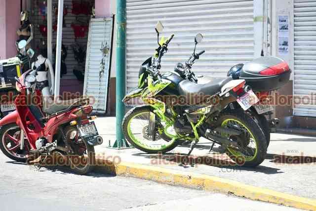 Xalapa, Ver., 20 de marzo de 2026.- Motociclistas usan de estacionamiento las banquetas de calles del Centro.