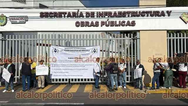Xalapa, Ver., 23 de marzo de 2026.- Trabajadores de la SIOP suspendieron labores este lunes y bloquearon el acceso como medida de presión para exigir su reconocimiento como empleados de base.