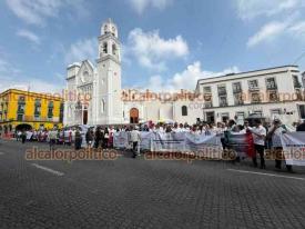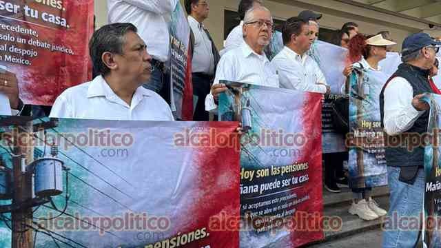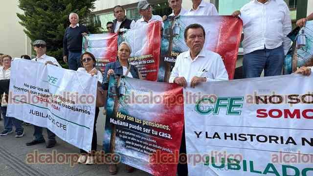 Xalapa, Ver., 24 de marzo de 2026.- Personal jubilado de la Comisión Federal de Electricidad protestó la mañana de este martes para defender el esquema de remuneraciones en el retiro; negaron contar con las denominadas “pensiones doradas”. Posteriormente marcharon al centro de la Capital