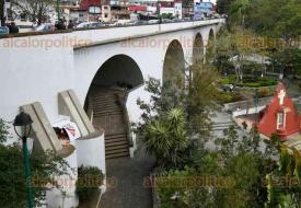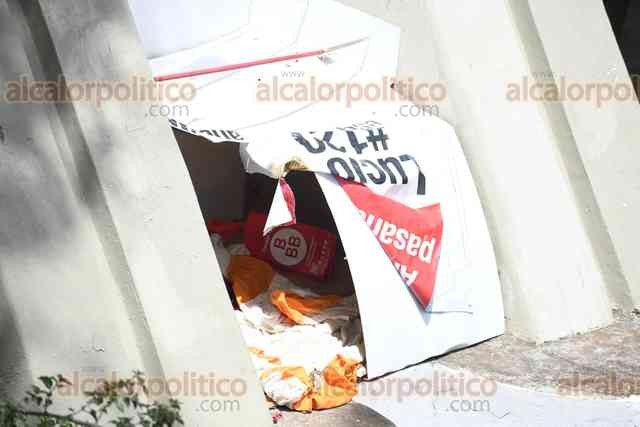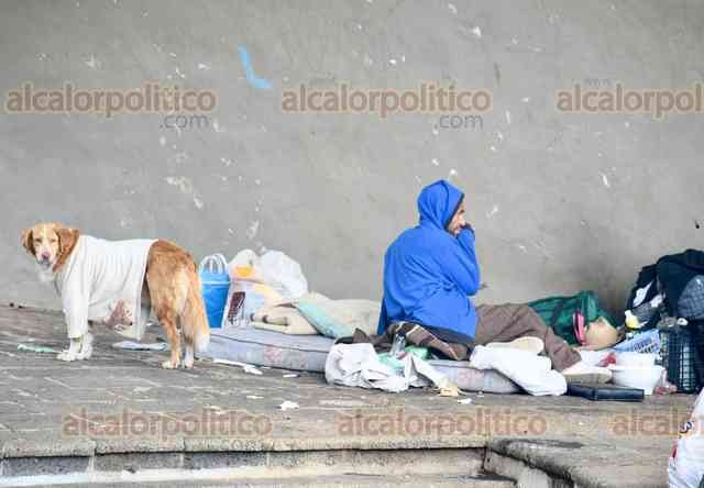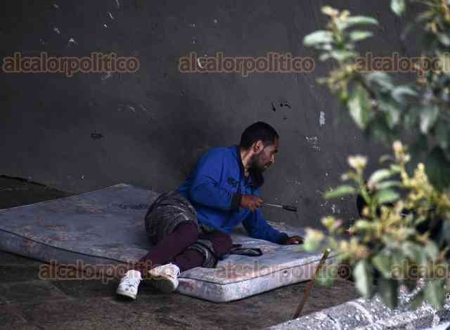 Xalapa, Ver., 27 de marzo de 2026.- En el Barrio Mágico del Xallitic, personas en situación de calle colocan hasta “casas de campaña” hechas con lonas para vivir en el sitio. Se les observa con cobijas, caguamas y hasta objetos punzocortantes.