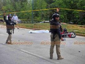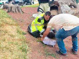 Xalapa, Ver., 28 de marzo de 2026.- Una pareja a bordo de motocicleta derrapó en Circuito Presidentes, a la altura de la USBI. El hombre falleció pese a que paramédicos trabajaron por 28 minutos para tratar de salvarle la vida. La mujer resultó lesionada y fue trasladada a un hospital. Circule con precaución.