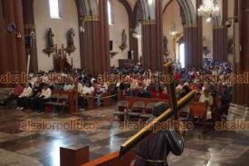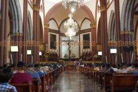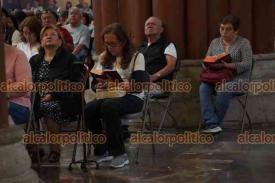 Xalapa, Ver., 4 de abril de 2026.- Este Sábado Santo, sacerdotes y feligreses llevan a cabo el Oficio de Lectura y Laudes en la Catedral Metropolitana, donde meditan sobre la Pasión y Muerte y Resurrección de Jesús.