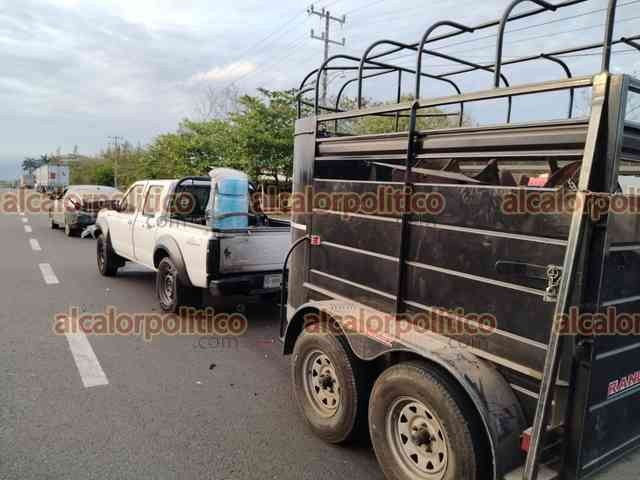 Puente Nacional, Ver., 9 de abril de 2026.- En la autopista Cardel-Poza Rica, a la altura del retorno el Pando 1, camioneta con remolque impactó por alcance a automóvil.