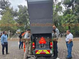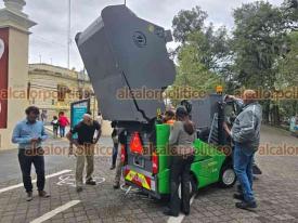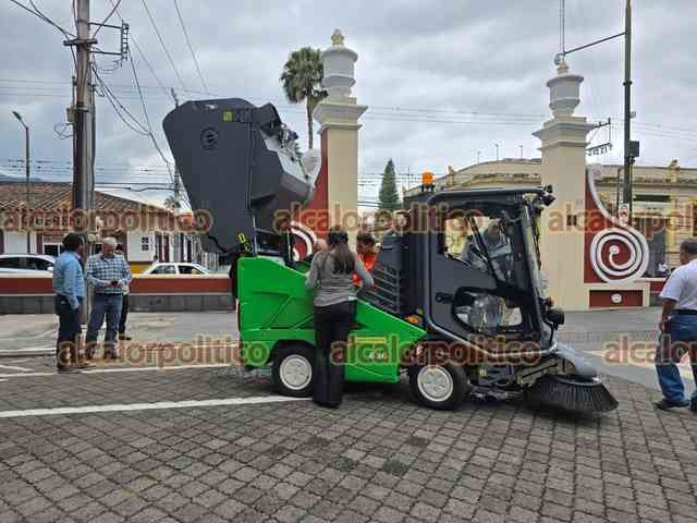 Orizaba, Ver., 10 de abril de 2026.- En el parque central de la Alameda se observó la nueva máquina barredora que adquirió el Ayuntamiento para labores de Limpia Pública. Por ahora se hacen pruebas y se desconoce cuánto costó.