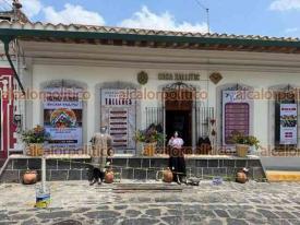 Xalapa, Ver., 11 de abril de 2026.- Artesanas de la Sierra de Zongolica ofrecen sus productos en la muestra “Manos de Atzompa”, instalada en Casa Xallitic, en el Barrio Mágico homónimo.