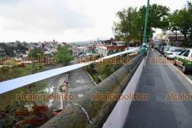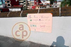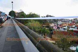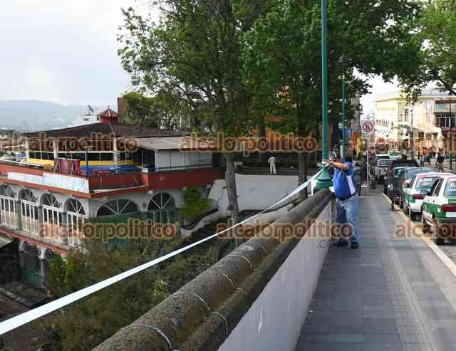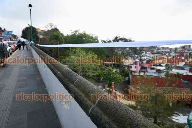 Xalapa, Ver., 13 de abril de 2026.- Tras los casos de suicidio, algunas personas colocaron mensajes de apoyo y un lazo blanco en el puente Xallitic, lo que causó expectación en muchos transeúntes.