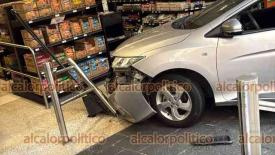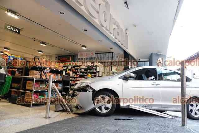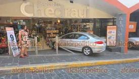 Xalapa, Ver., 15 de abril de 2025.- Adulta mayor metió su auto a la tienda de Almacenes Chedraui, en la calle Revolución, en el Centro. Presuntamente, se confundió y pensó que era estacionamiento.