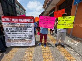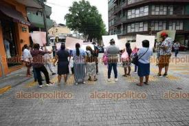 Xalapa, Ver., 16 de abril de 2026.- Manifestantes bloquearon la calle Gutiérrez Zamora para exigir el pago de 11 millones a SEDATU.