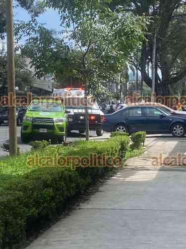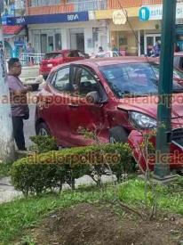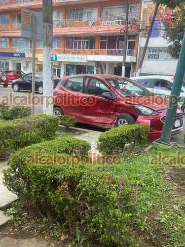 Xalapa, Ver., 17 de abril de 2026.- Autos chocaron en la avenida Ávila Camacho, a la altura del Teatro del Estado. Percance se dio cuando uno de los vehículos salía de edificio y fue impactado por el otro automóvil.