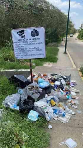 Xalapa, Ver., 17 de abril de 2026.- En la calle Andador 11, en la colonia Santa Bárbara —en la Reserva Territorial, cerca de la entrada al Tecnológico de Xalapa—, vecinos no respetan los días de recolección. “Es un foco de infección y la basura, si llueve, se va al río de aguas negras que pasa en el área verde”, recrimina lector.