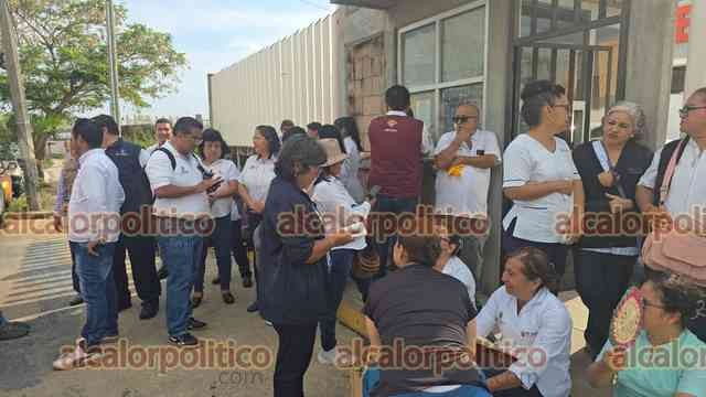 Coatzacoalcos, Ver., 20 de abril de 2026.- Trabajadores de la Jurisdicción Sanitaria XI se sumaron a la protesta con una asamblea permanente pacífica para exigir atención a una serie de demandas laborales y operativas que, aseguran, llevan años sin resolverse.