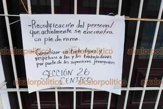 Xalapa, Ver., 20 de abril de 2026.- Personal de Salud se manifiesta, sin bloquear calle, en las oficinas de los Servicios de Salud ubicadas en Xalapeños Ilustres.