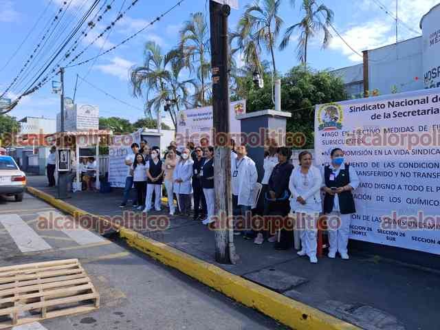 Córdoba, Ver., 20 de abril de Trabajadores del Sector Salud se manifestaron en el Hospital General Córdoba-Yanga, en la Jurisdicción Sanitaria Número 6 y otros centros de salud como parte de la protesta manera simultánea en unidades médicas del Estado.