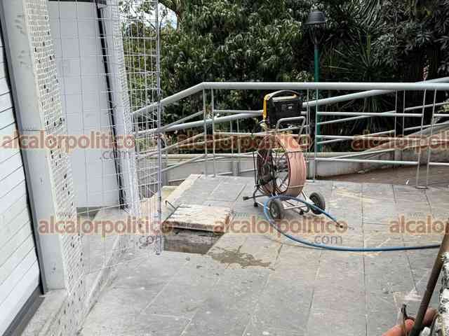 Xalapa, Ver., 22 de abril de 2026.- Permanece cerrada la calle Lucio, a partir de Abasolo, hasta antes de Altamirano. CMAS atiende la fuga de un drenaje.