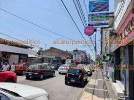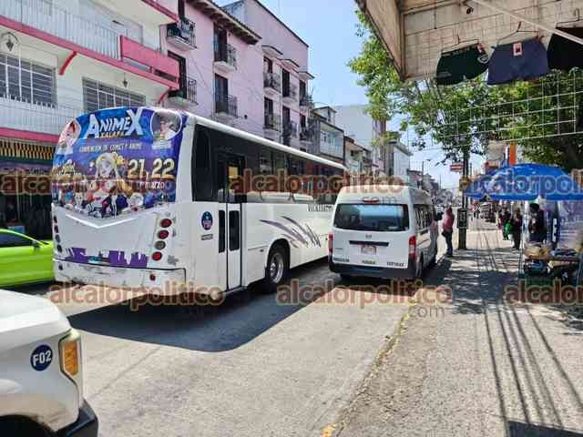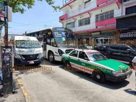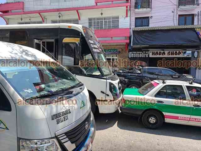 Xalapa, Ver., 25 de abril de 2026.- Choque por alcance de autobús y taxi provocó congestionamiento vial en la calle Clavijero, a la altura de la Arena Xalapa, en el centro de la Capital.