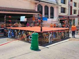 Xalapa, Ver., 25 de abril de 2026.- Por función de lucha libre, programada para las 16:00 horas, se colocaron ring y sillas frente a plaza “Clavijero”, lo que redujo a un carril la circulación vehicular en ese tramo de la calle del mismo nombre. Circule con precaución.