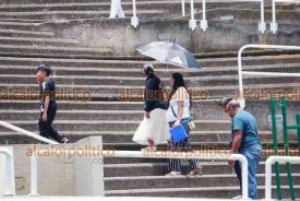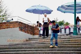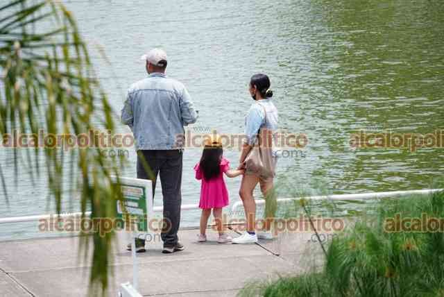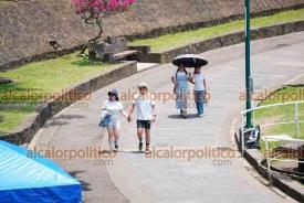 Xalapa, Ver., 25 de abril de 2026.- A casi 30º C xalapeños pasean por Los Lagos. Algunos con sombreros y otros con alguna bebida embotellada buscan no acalorarse tanto. PC municipal pide extremar precauciones para evitar golpes de calor.