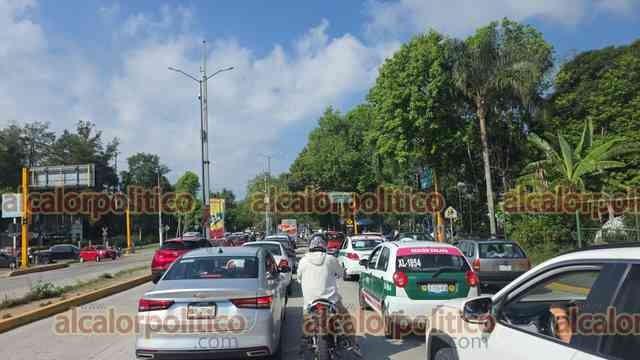 Xalapa, Ver., 28 de abril de 2026.- Caos vial en la avenida Circuito Presidentes por percance en que se vieron involucrados varios vehículos a la altura de la calle Ángel Carbajal con dirección al Velódromo. Se reporta tráfico lento. Maneje con precaución por la zona.