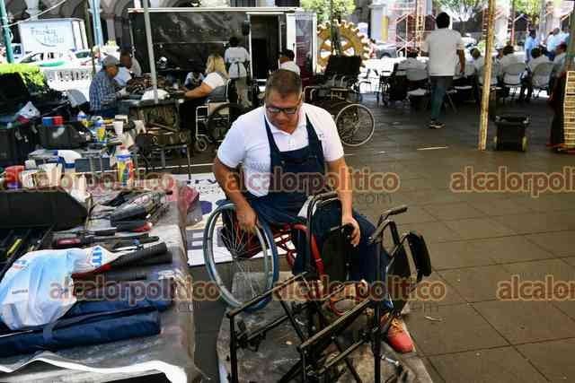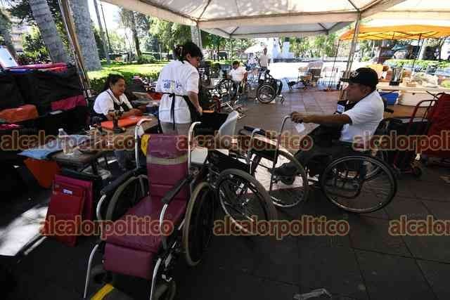 Xalapa, Ver., 28 de abril de 2026.- En el parque Juárez, el Club Rotario realiza jornada “Enchúlame la silla” para reparar hasta 90 sillas de ruedas.