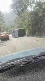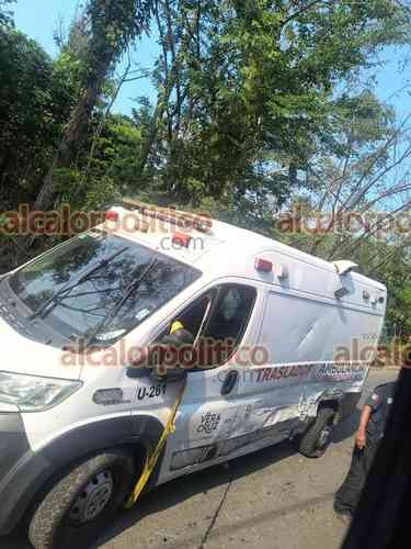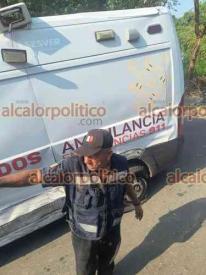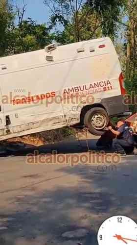 Misantla, Ver., 28 de abril de 2026.- Ambulancia de la Secretaría de Salud asignada al Hospital de Naolinco volcó en la carretera Xalapa-Misantla. Acudieron elementos de la Cruz Roja local y del grupo de Rescate Yecuatla para brindar atención y apoyo a los ocupantes de la unidad.