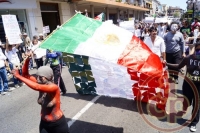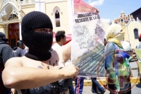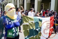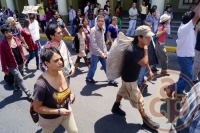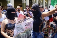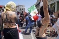 Xalapa, Ver., 18 de marzo de 2013.- Con motivo del 75 aniversario de la expropiación petrolera, integrantes del movimiento “#YoSoy132” se manifestaron en contra de la privatización de PEMEX; las chicas en señal de protesta salieron semidesnudas con "body paint" y con el rostro cubierto con telas diversas.