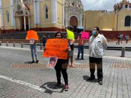La señora Teresa Méndez López, en compañía de vecinos, familiares y amigos, se manifestó en la Plaza Lerdo de Xalapa, para pedir la intervención de la Fiscalía General del Estado (FGE) y del gobernador Cuitláhuac García Jiménez y denunciar públicamente la agresión por parte de su esposo Israel Muñóz García.