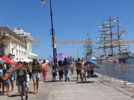 En el Malecón de la ciudad de Veracruz, largas filas se observan debido a las personas que buscan subir a los buques que forman parte del Festival Velas de Latinoamérica.