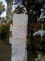 Cabe mencionar que a la entrada de la zona arqueológica se colocaron algunas cartulinas contra el Gobernador.