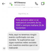Días antes del evento, algunos fans sospecharon porque no había aviso de los artistas de su visita a Veracruz e incluso contactaron al recinto y el WTC les informó que no tenía programado el concierto.