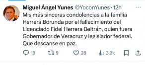 Miguel Ángel Yunes Linares, exgobernador de Veracruz, reaccionó públicamente ante el fallecimiento de su histórico adversario político, Fidel Herrera Beltrán, con un mensaje breve, que marca el cierre de una era de confrontaciones en la política veracruzana.