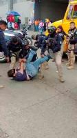 En videos que fueron grabados por testigos y difundidos por redes sociales, se observa cómo más de 5 elementos lo someten en el suelo, mientras el sujeto lanza patadas y da vueltas, gritando .