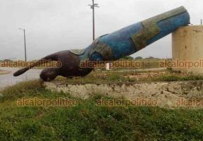 Las rachas de viento provocadas por el frente frío número 14 derribaron la estatua de la mujer ubicada en el malecón costero, al poniente de Coatzacoalcos.