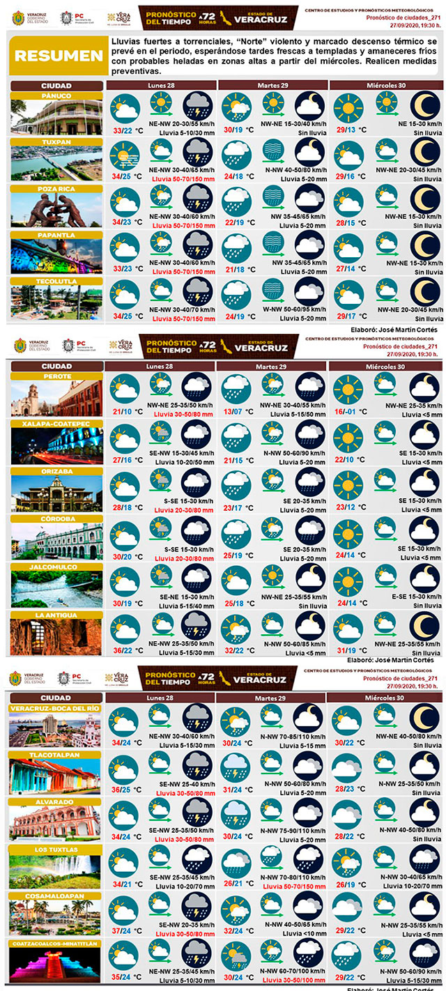 "Norte" violento y marcado descenso térmico se prevé en el periodo, esperándose tardes frescas a templadas y amaneceres fríos con probables heladas en zonas altas a partir del miércoles.